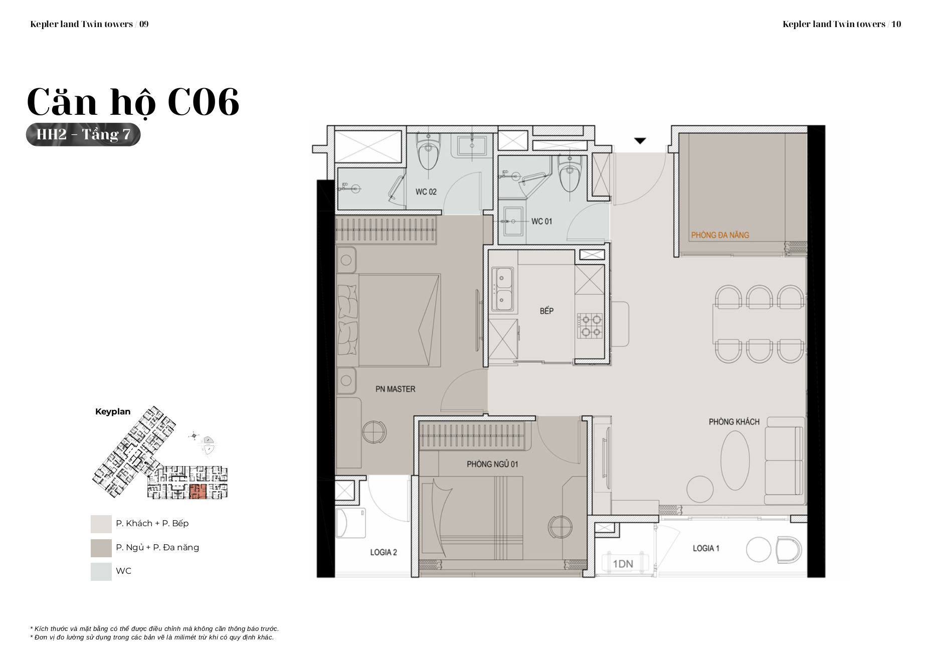 Thiết kế 2 ngủ diện tích 81,3m2 và 82m2 tòa HH2 Kepler Land